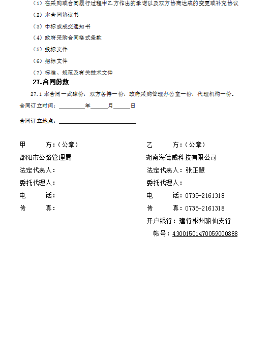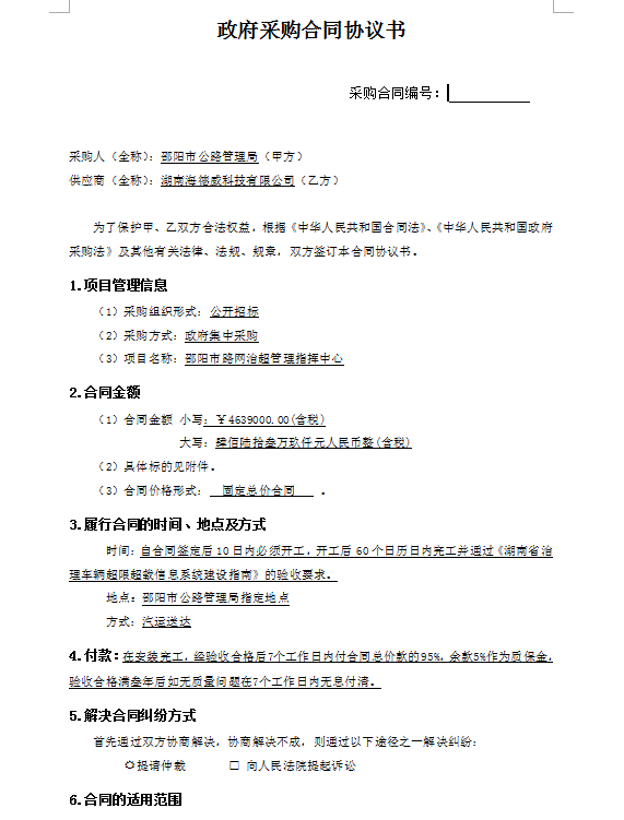 邵陽市路網(wǎng)治超管理指揮中心合同公示