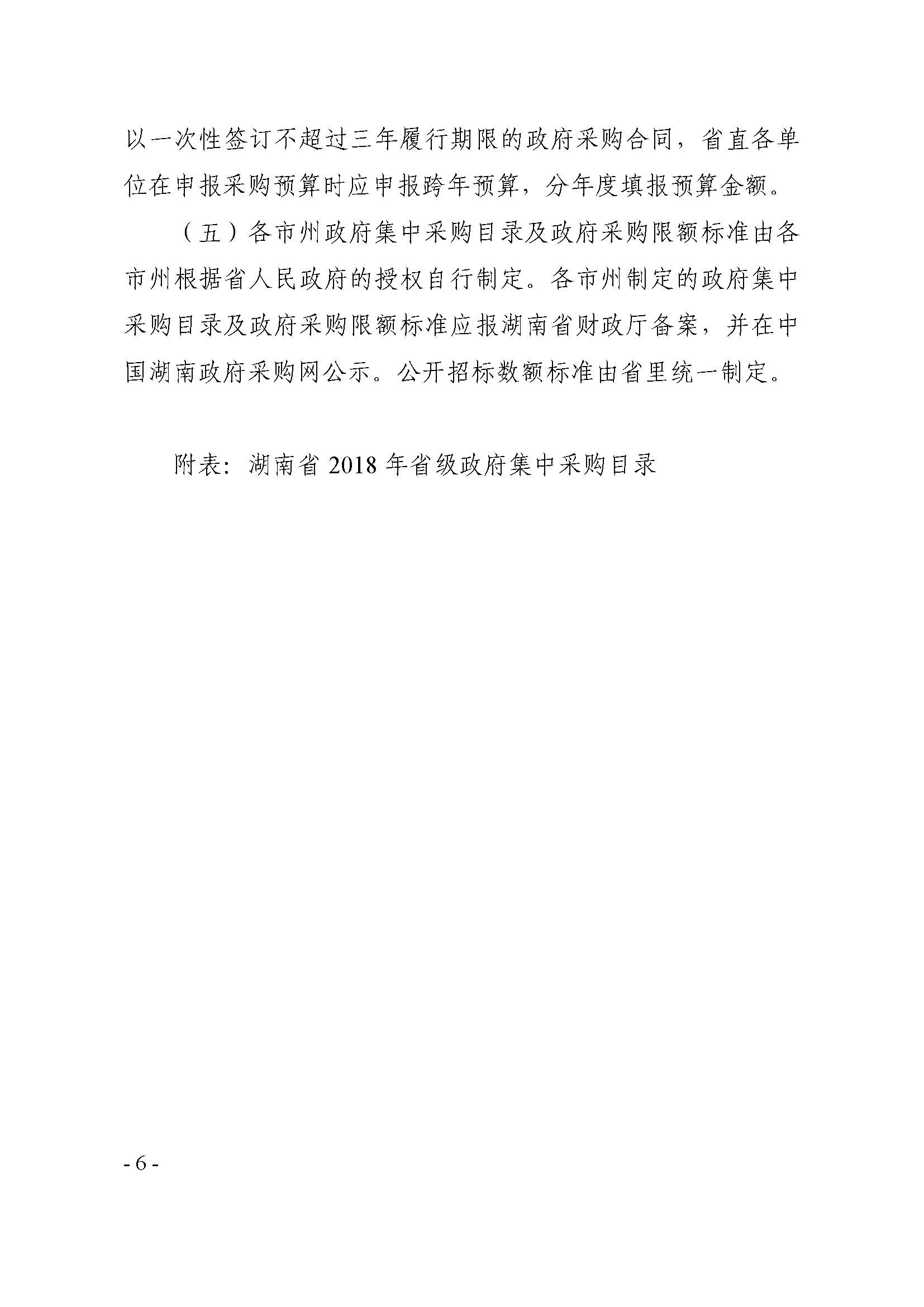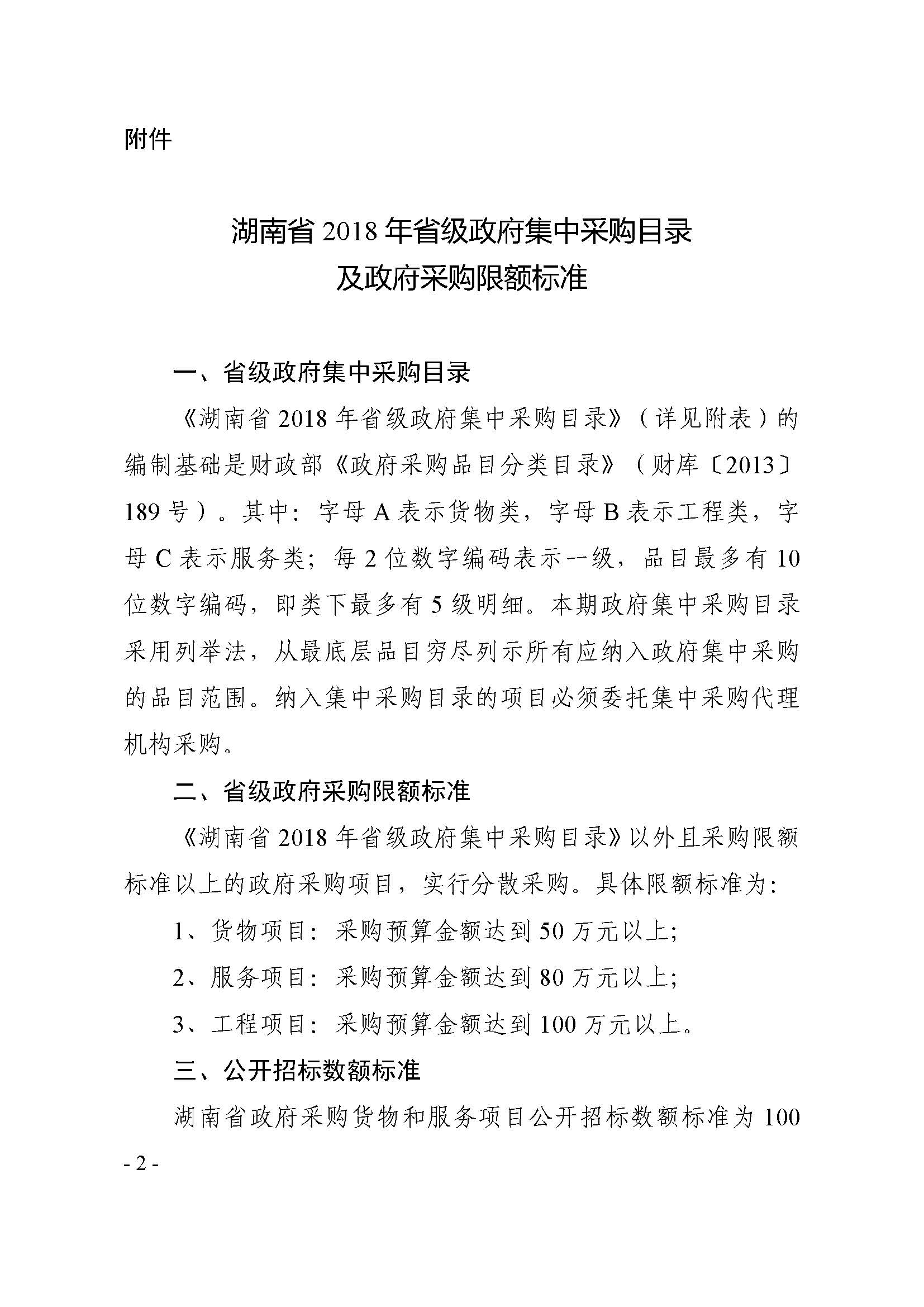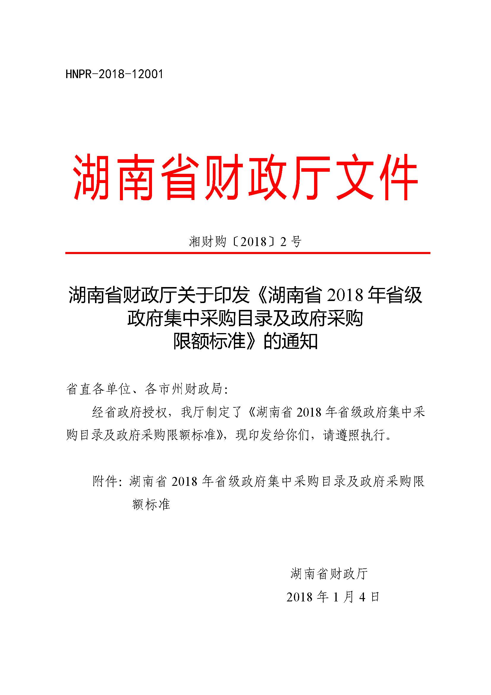 湖南省財政廳關(guān)于印發(fā)《湖南省2018年省級政府集中采購目錄及政府采購 限額標準》的通知