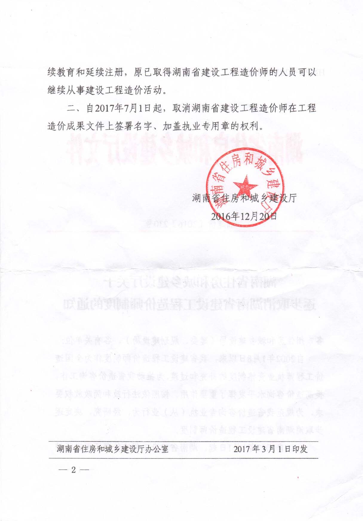 湖南省住建廳關(guān)于逐步取消湖南省建設(shè)工程造價(jià)師制度的通知