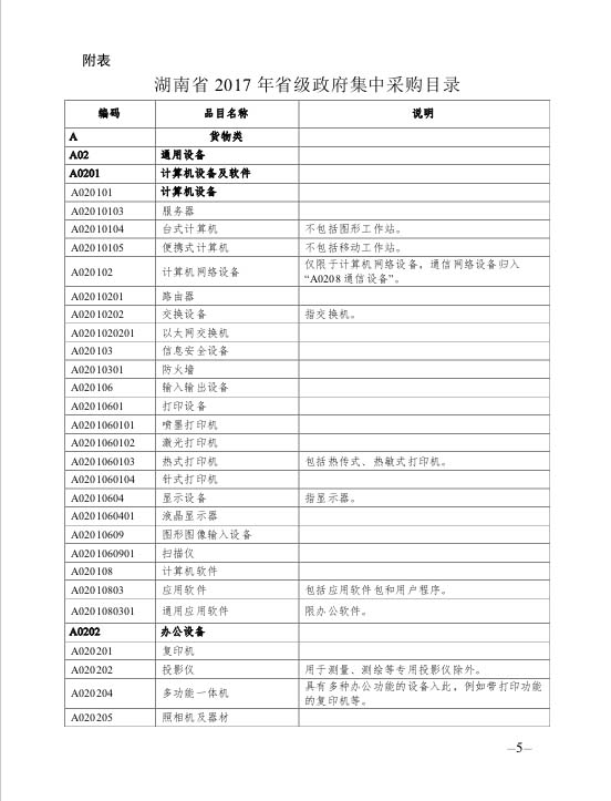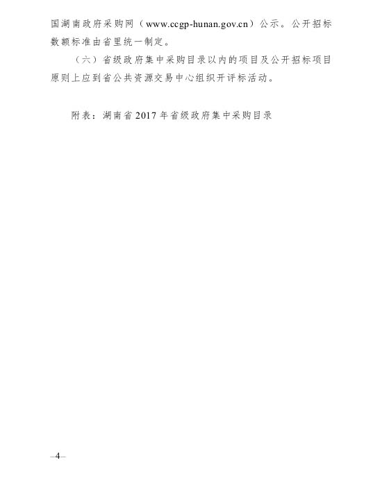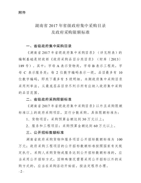 湖南省財政廳關(guān)于印發(fā)《湖南省2017年省級政府集中采購目錄以及政府采購限額標準》的通知
