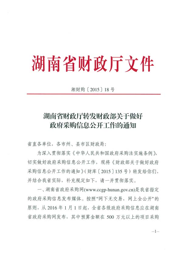 湖南省財政廳轉(zhuǎn)發(fā)財政部關(guān)于做好政府采購信息公開工作的通知